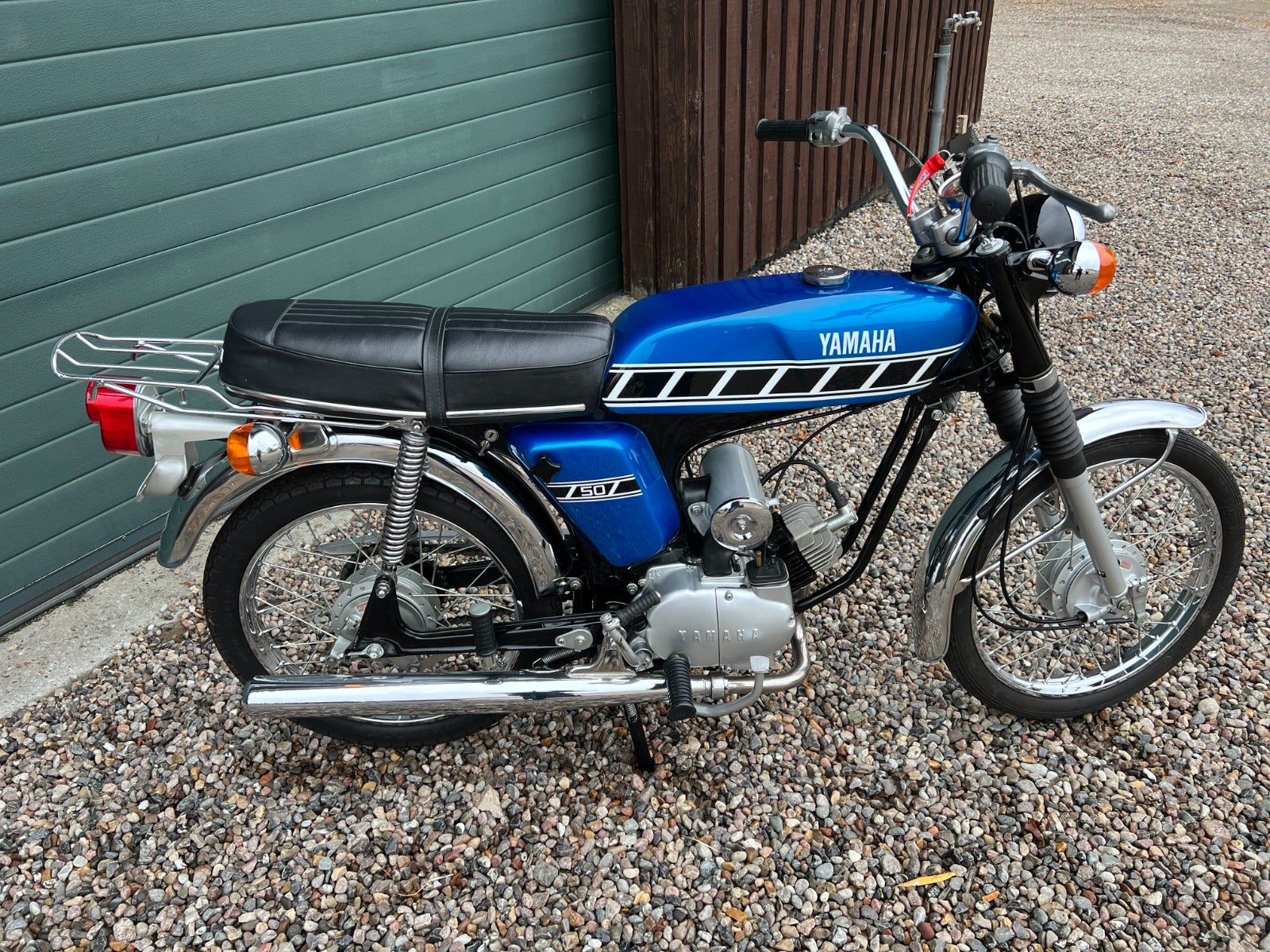 Yamaha FS1 50 knallert 4-gear, årg. 1976 blåmet. Dansk knallert fra ny med 381 stelnummer. Flot restaureret, fremtræder i meget fin stand. BEM.: Lagt ind som Hamlet motorcykel, da vi ikke længere kan oprette knallerter i programmet hvor vi opdaterer vores hjemmeside.