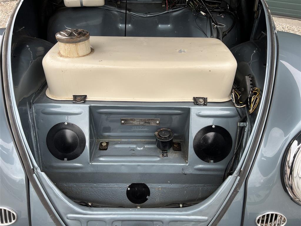 Bilen er total restaureret for en del år siden, fremtræder i god velkørende stand. Flot farvekombination blågrå metallak (original farve) og beige indtræk. Bilen er veteransynet i 2024, næste syn i 2032. Bilen står på sorte emaljeplader Æ1254.