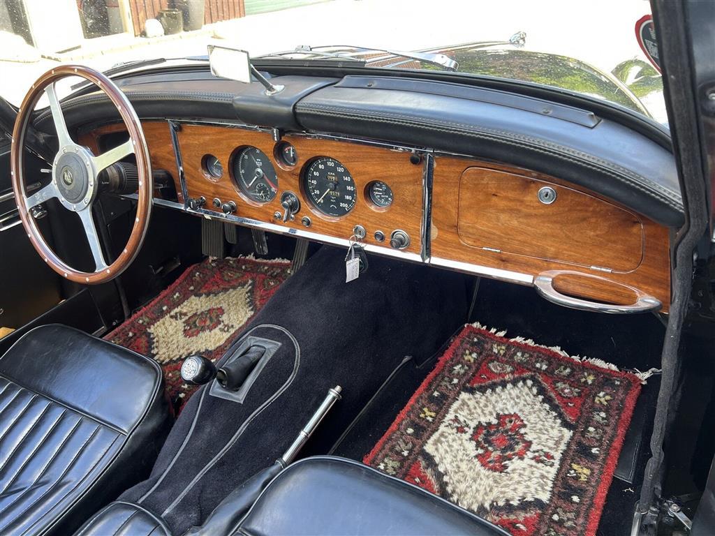 Fin Jaguar XK150 DHC til prisen kun kr. 469.800,- Bilen har haft samme ejer siden 1988 hvor den blev importeret fra Florida, gennemgik en restaurering samt en delvis motorrenovering for ca. 25 siden