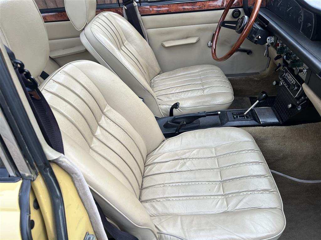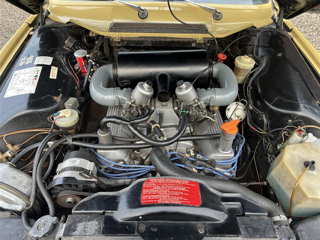 I 2021 kom der en renoveret SD1 V8 motor i bilen, kørt få kilometer siden. Flot farvekombination Almond Yellow (den originale farve fra ny) med beige nappatag og indtræk.