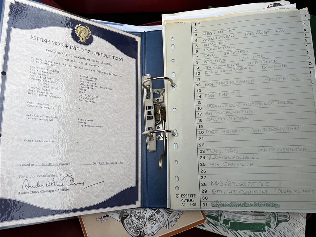 SUPER flot MGA 1600 MKII Roadster, den mest eftertragtede MGA model. Bilen blev total restaureret i Danmark i 2014 og har siden kørt 19.000 km. Fremtræder i perfekt og meget velkørende stand.